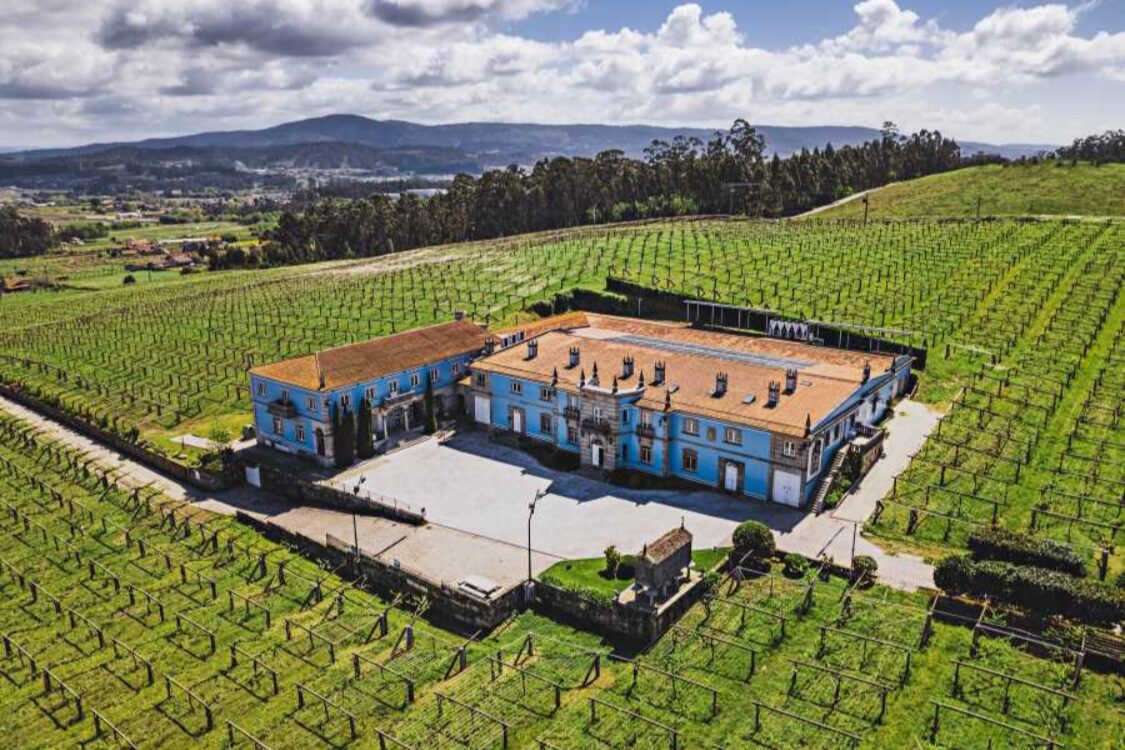 The extraordinary mansion and cellars are located in Tremoedo, 3km from the sea behind Vilanova de Arousa. This is the heart of the Salnes valley subzone of Rias Baixas, north of Pontevedra, which many commentators regard as the best for fresh, mineral-driven Albariño. The chateau is surrounded by the vineyards.