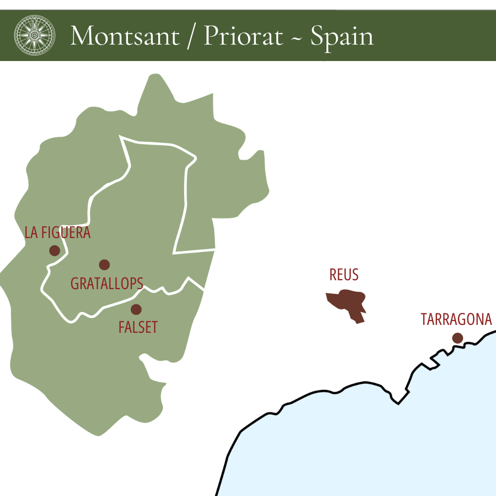 The schistous slate and quartz soil, locally called ‘llicorella’, is organically very poor and ideal for wine growing. The climate is unique with very hot summers, relatively cold winters, little rain and dry northwesterly winds diminishing the moderating influence of the nearby Mediterranean.